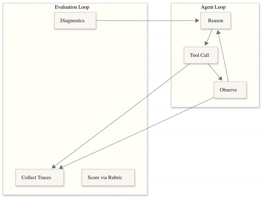 Evaluation should not steer the agent directly. It should observe, score, and diagnose.